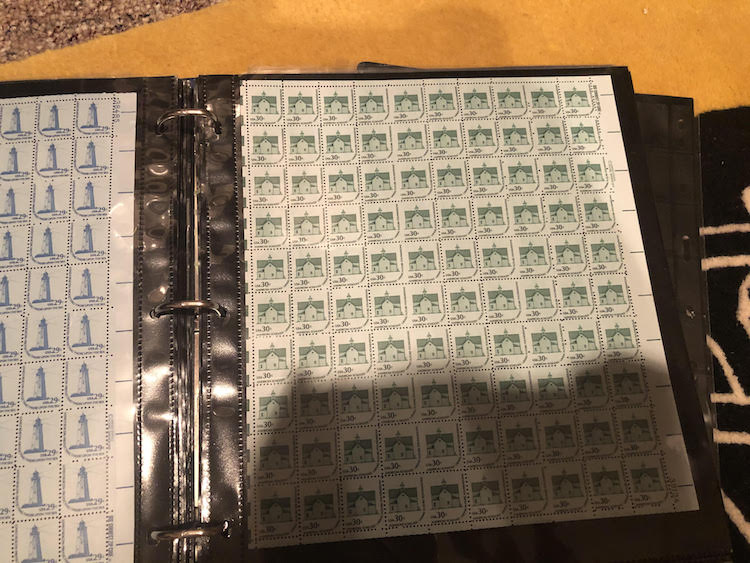 I always enjoyed collecting full sheets of airmail stamps. I found these to be extremely colorful, and I especially loved the ones that were largely red, white, and blue. This sheet features Mt. Rushmore. These can be purchased on eBay for about $30.00 or so. Below are some similar airmail sheets.