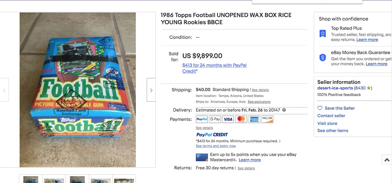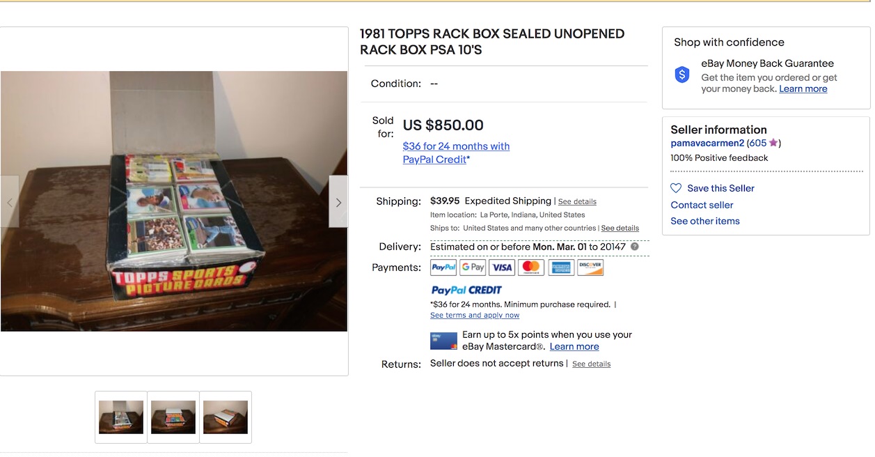 A 1981 Topps rack box sold on eBay on January 3, 2021 for $850 | $1000 - $1250 |