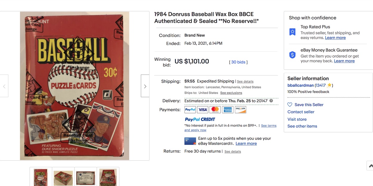 A 1984 Donruss sold on eBay on Febraury 3, 2021, for $1101 | $800 - $1000 |